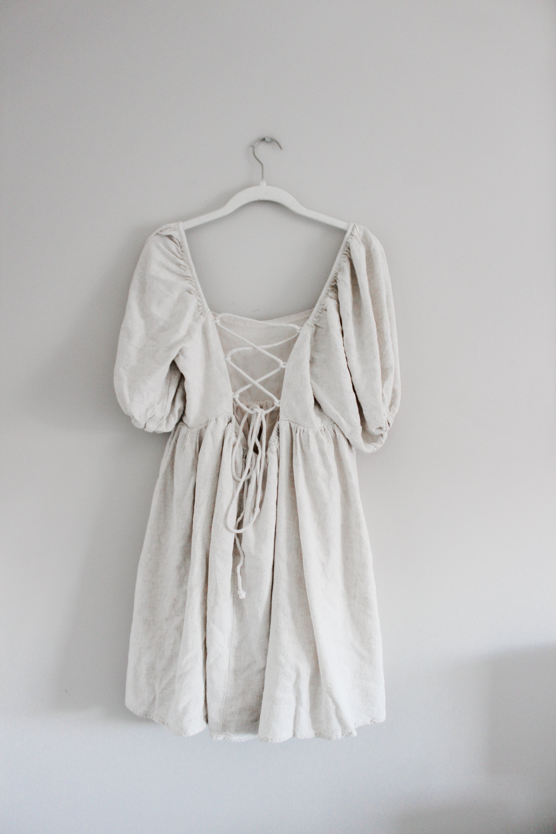 Love the tie detailing on the back. No zipper - ties act as one! Can fit a small/medium.