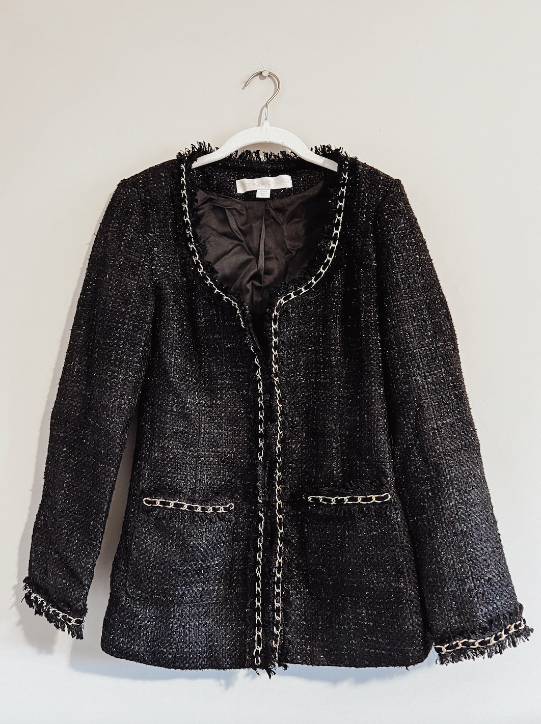 Boston Proper Black Tweed Chain Link Blazer (4)