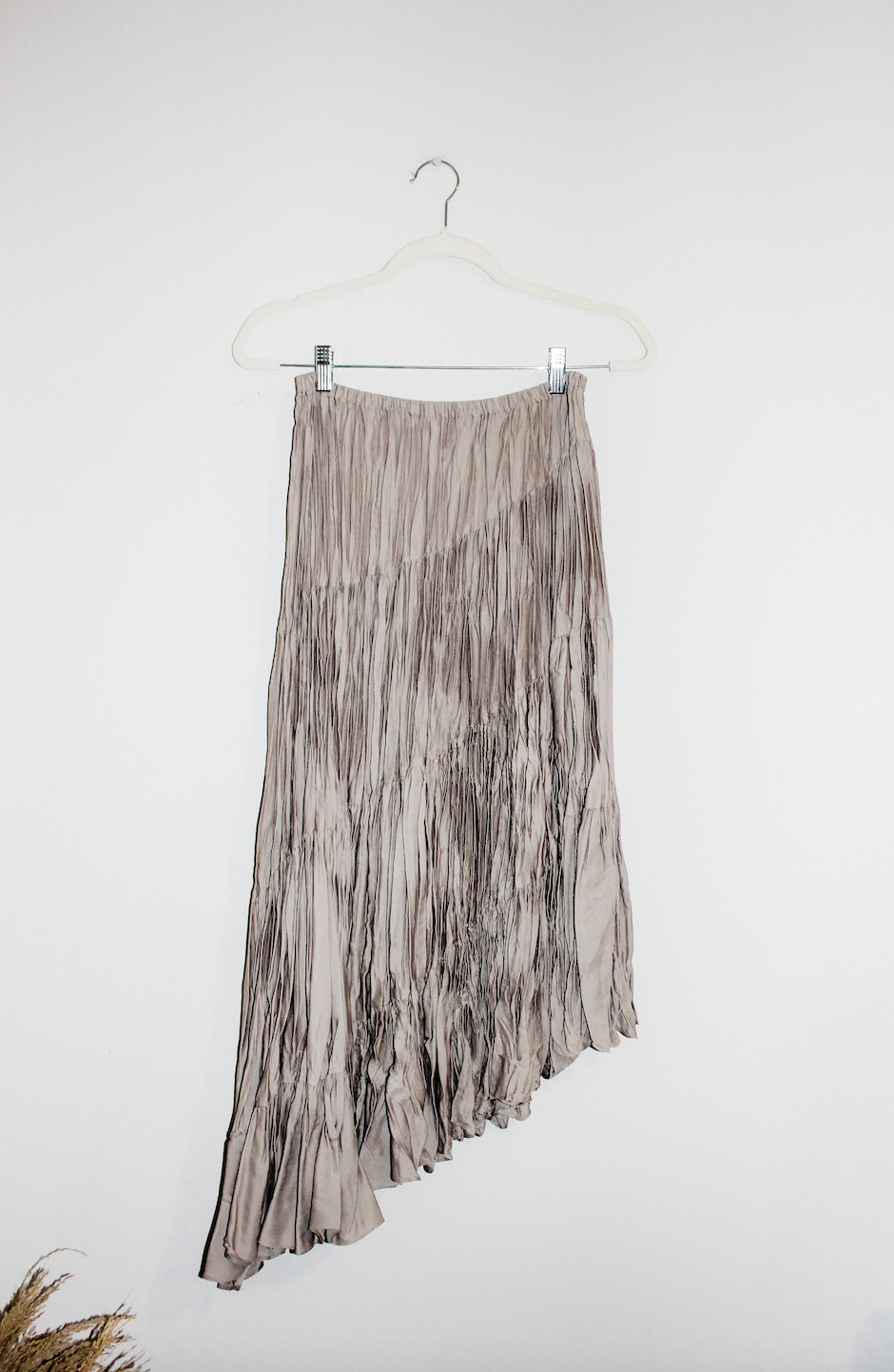 Taupe color. Love the look of this piece - can wear with a classic bodysuit for the perfect summer outfit.