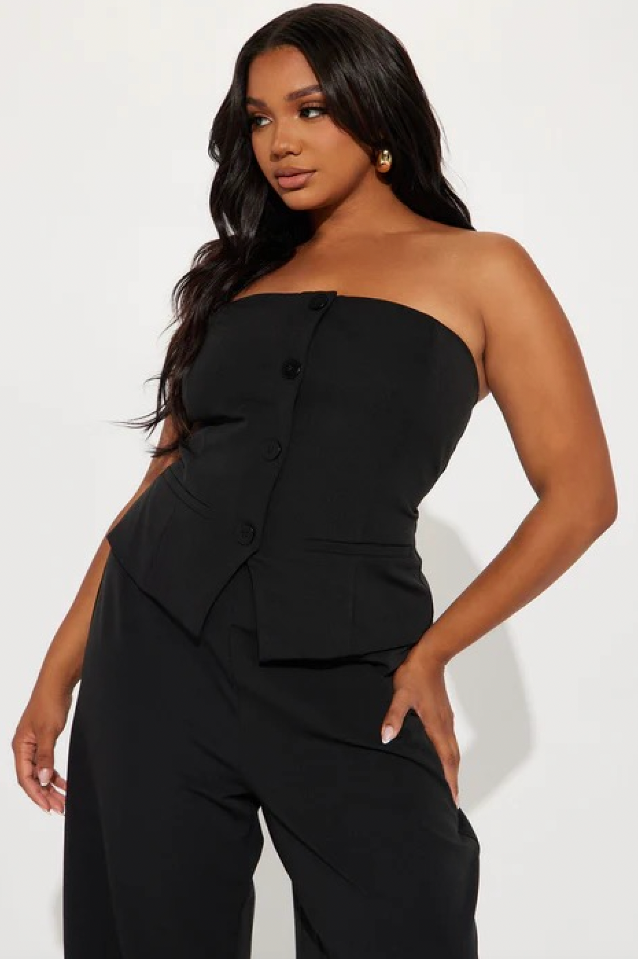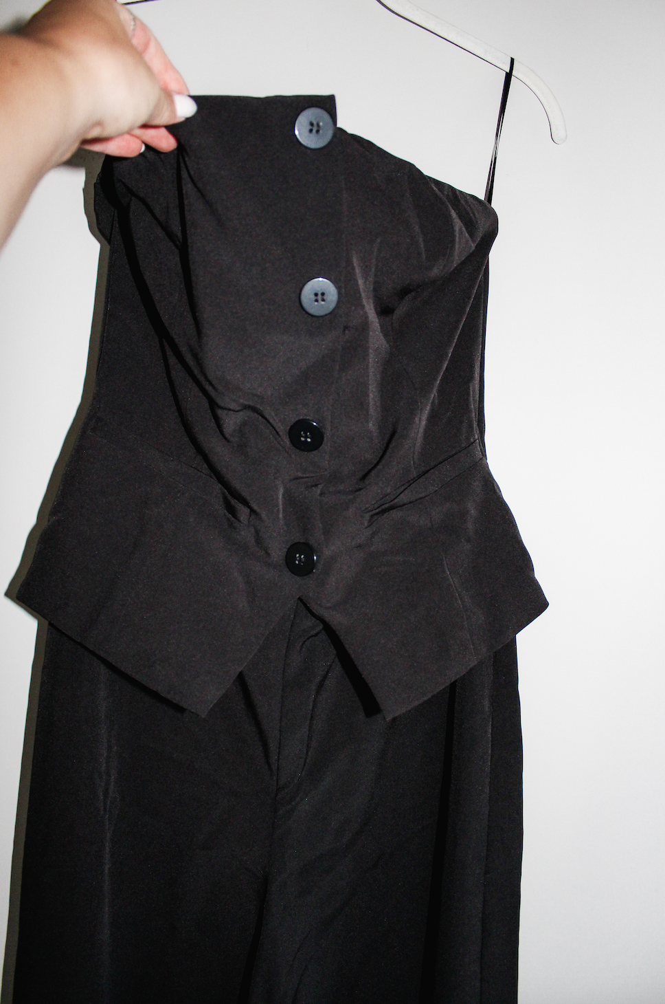 "Employee of the Week" Black Strapless Jumpsuit (M)