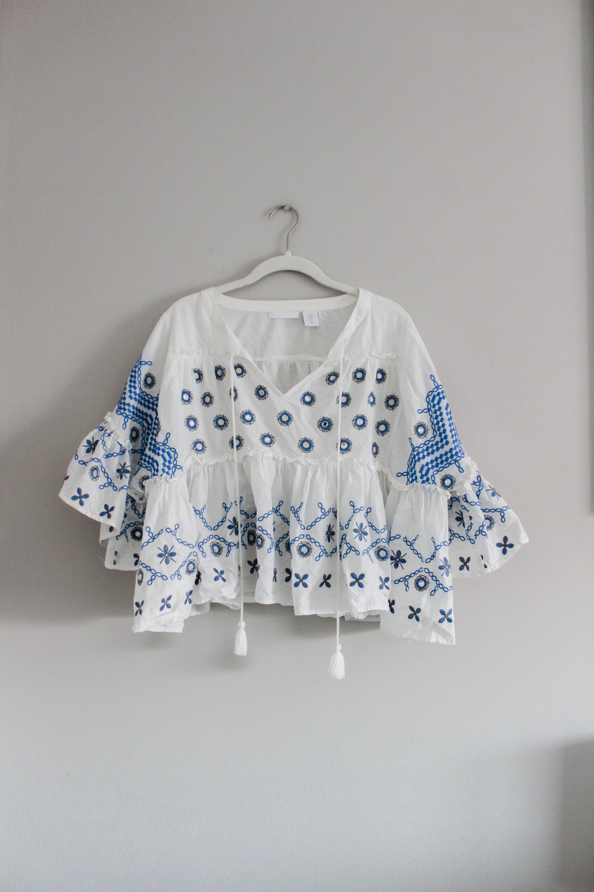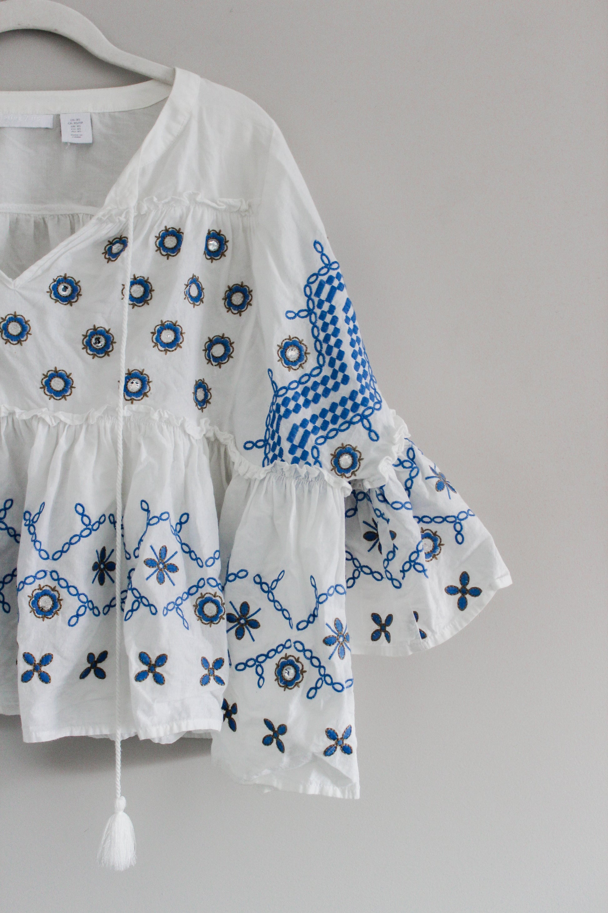 PURE/US Blue and White Embroidered Flowy Blouse (XS)