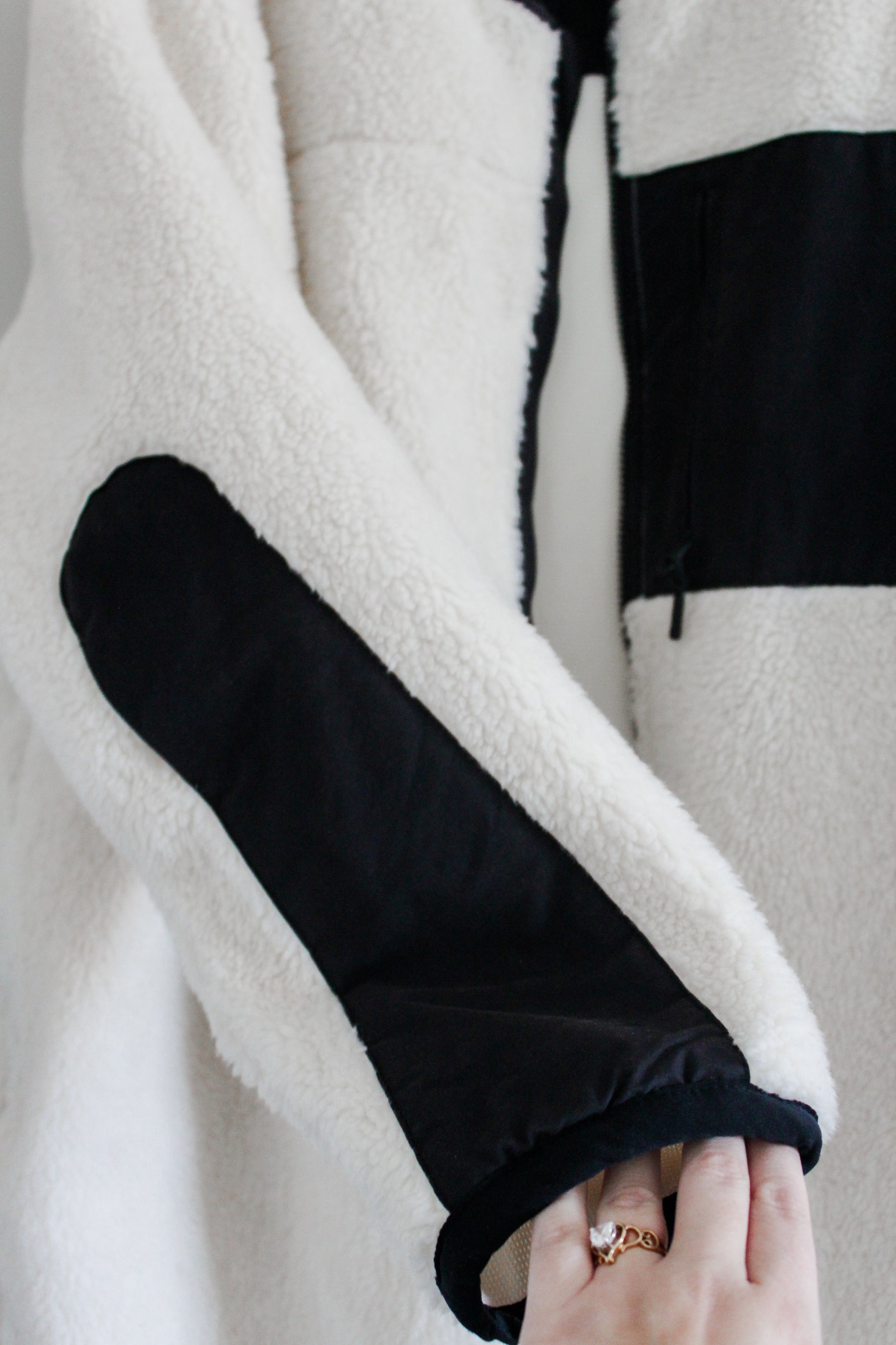 Has front zipper. No hood! Sooo soft and in amazing condition.
